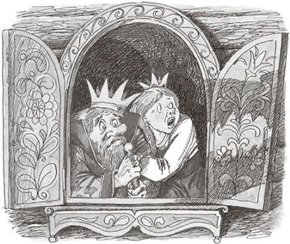 Король и принцесса испуганно выглядывали из окошка и просто не знали, что тут поделать.
