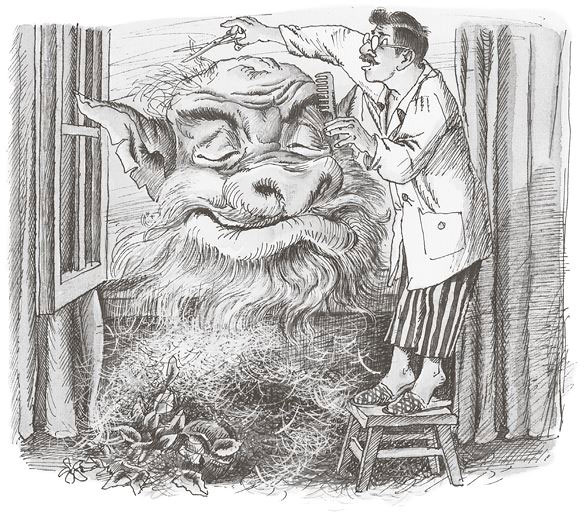 – Фу-фу-фу! – отдуваясь, сказал Рыжий. – У вас в парикмахерской очень жарко. Стригите прямо через окно. Только бороду не сбривайте. Сделайте так, чтоб я был на солнышко похож.