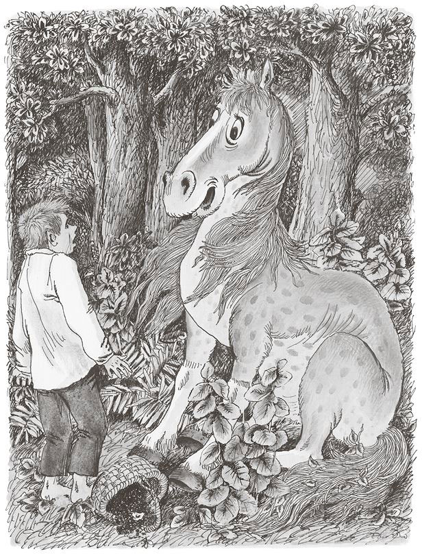 – Чего-чего? – сказал он, а у самого губы затряслись. А глаза от ужаса так раскрылись, так широко-широко и бездонно, что Зелёная Лошадь заглянула в них и сразу его полюбила, навеки и окончательно.