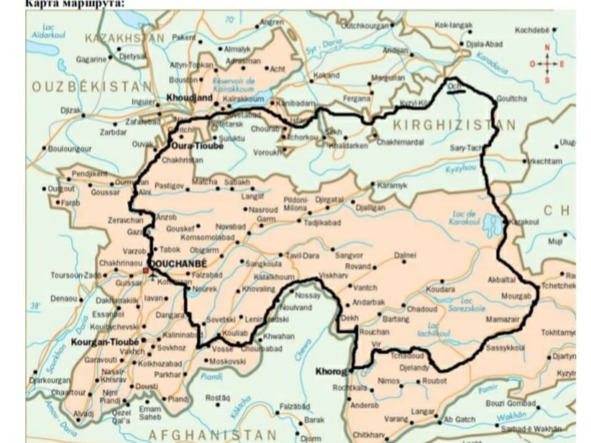 Нить маршрута: Ош – пер. Чыйырчык (2402) – Гульча – пер. Талдык (3615) – пер. 40 лет Киргизии (3541) – Сары-Таш (3170) – пер. Кызыл-арт (4250) – долина реки Маркансу (4000) – пер. Уйбулак (4200) – Каракуль (3900) – пер. Ак-Байтал (4655) – Мургаб (3600) – пер. Назайташ (4314) – Аличурская долина (4000) – пер. Харгуш (4091) – пер. Тагаркаты (4168) – пер. Кой-Тезек (4251) долина реки Гунт – Хорог (2200) – долина реки Пяндж – Калай-Хумб – пер. Шуробад (2000) – Куляб – тонелевый перевал Нурек – тоннелевый перевал Хатлон – Душанбе – тоннелевый перевал Анзоб (2600) – Айни – тоннелевый перевал Шахристан (2600) – Пролетарск (Худжанд) – Кучкак – Безымянный перевал – Исфара – Баткен – Безымянный перевал – Кадамжай – Безымянный перевал – Кызыл-Кия – Безымянный перевал – Ноокат – Безымянный перевал – Ош