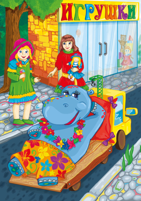 «На этой жёлтой машине, – думала малышка, – бегемот будет очень хорошо смотреться! На него наденут разноцветную гирлянду, и все люди будут останавливаться и смотреть. А когда эвакуатор подъедет к нашему подъезду, то все соседские мальчишки и девчонки просто умрут от зависти, когда услышат, в какую квартиру прибыл необычайный гость. Бегемот важно спустится с эвакуатора и вперевалочку медленно подойдёт к подъезду…»