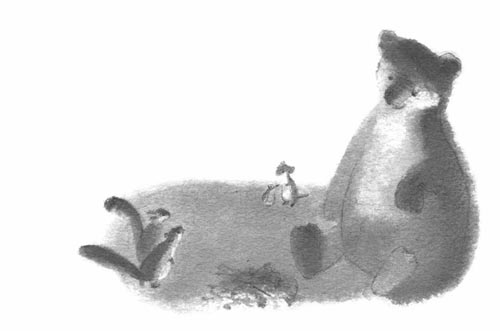 – Ой, – прошептал мышонок, оглядев медведя, – спит…