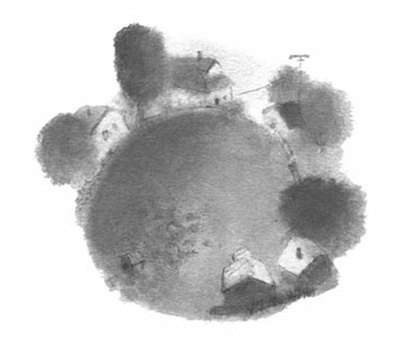 Медведь и мышонок сидели в лопухах, на краю круглой лужайки и разглядывали деревню.