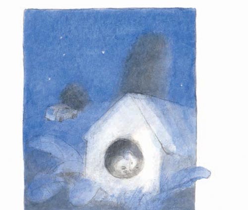 Уже смеркалось. Мышонок устал и решил заночевать прямо тут, в деревне Круглово. Он нашёл на краю лужайки старую собачью конуру, выстланную сеном. Там затащил туда свой рюкзачок, который так и валялся среди лопухов, достал немного орехов, сел у входа. Мышонок грыз орехи и глядел на лужайку. В окнах домов зажглись огоньки. Дядя Ваня собирался грузить в машину Василия. Он заботливо отряхивал с медведя приставшие к шерсти травинки, а тот послушно стоял и мурчал от удовольствия. Рядом суетились тётя Глаша и тётя Клава: одна протягивала Василию большую морковку, другая угощала яблоком…