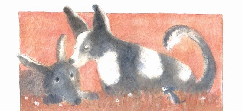 Мамаша села рядом с умытым Полканом, а Там робко выступил из травы.