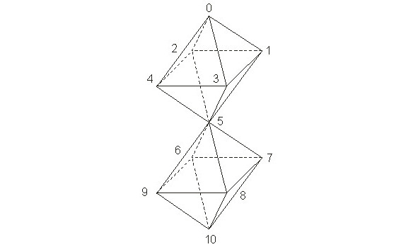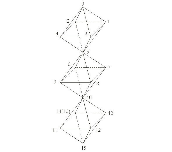 Некоторая неудовлетворенность остается из-за расположения «фонтана Меркурия» в нижней части структуры. В своих символах он в большей степени соответствует самой верхней части. Юнг начинает свою работу «Психология переноса» именно с анализа иллюстрации «Фонтан Меркурия» к алхимической работе Rosarium philosophorum. Только после этого он переходит к рассмотрению брачного кватерниона, которому у нас соответствуют первые четыре карты. Поэтому алхимической традиции более соответствует расположение Фонтана над брачным кватернионом. Тогда можно построить иную общую структуру из наших четырех октаэдров. В результате получим вариант, изображенный на рис. 15 б). Новое положение Дьявола в самом низу структуры соответствует всей средневековой мистике. И тогда геометрическим центром симметрии всей системы становится квинтэссенция «просвещенное дитя».