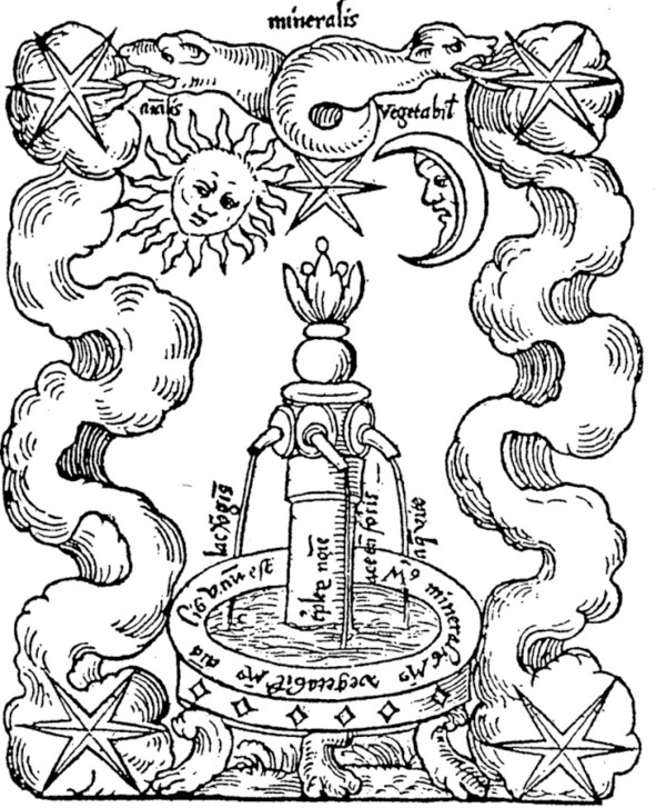 Рис. 12 Фонтан Меркурия. Rosarium philosophorum, 1593.