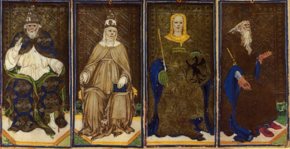 Рис.1 Висконти-Сфорца. Жрец (Иерофант), Жрица, Царица, Царь