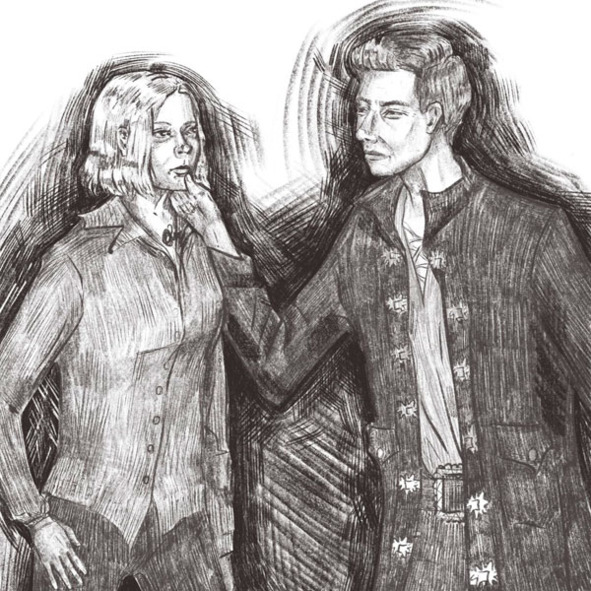 Рыжеволосая испуганно посмотрела на пирата, но подчинилась. Пока она умывалась и расчесывала свои длинные золотые волосы, он ждал ее у дверей. Когда она закончила свой туалет, он еще раз окинул ее стан оценивающим взглядом и, вдруг резко изменившись в лице, произнес: «Прости меня… за… все». И опустил взгляд. Повинуясь какому-то внутреннему порыву, девушка приблизилась к нему, ласково положила руки ему на плечи и спросила тихо: «Почему?»