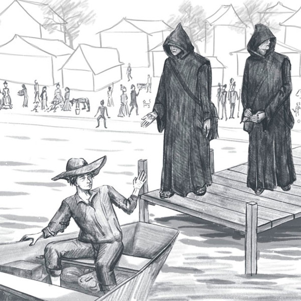 На берег были доставлены двое пассажиров – редкое исключение для военного судна. Ими оказались двое скромных монахов.