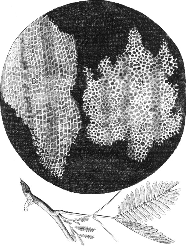 Рисунок 5. Клеточная структура пробки, представленная Робертом Гуком, «Микрография» (1665)