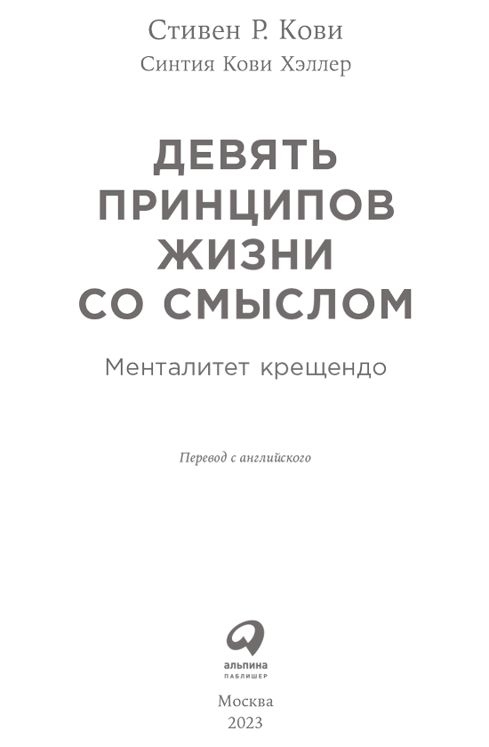 Наш отец, Стивен Кови, глубоко верил в мощную способность менталитета крещендо менять к лучшему жизнь любого человека: вновь зажечь его внутренний огонь и позволить ему создать собственное будущее, которое в итоге станет его уникальным достоянием. Я надеюсь, что эта книга займет заслуженное место в непреходящем, вечно живом великом наследии Кови и будет служить людям, помогая им раскрывать свой грандиозный потенциал. И хотя наш отец покинул этот мир, его наследие продолжает жить – жить в духе крещендо.