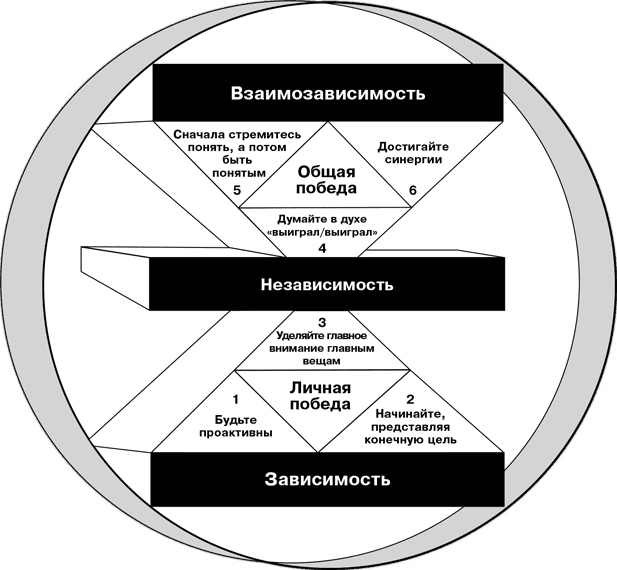 Поэтому в данном разделе речь пойдет также и об установках, навыках и стратегиях, способствующих установлению и поддержанию доверительных отношений с окружающими. Когда человек становится относительно независимым, перед ним встает задача достичь эффективной взаимосвязи с другими людьми. Чтобы добиться этого, мы должны проявлять чуткость и синергию в нашем стремлении быть проактивными и продуктивными.