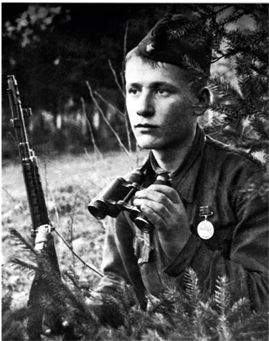Фотография солдата Алёши, сделана фотографом Даниилом Онохиным. Из книги Н. Н. Никулина «Воспоминания о войне»