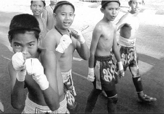 У входа в один из магазинов в Таиланде мне довелось наблюдать очень показательную сценку. Двое малышей 5-6 лет играли «в бокс» (пока родители занимались покупками, их чада остались на улице под присмотром бабушки). Руки детей были неуклюже обмотаны белыми тряпками, имитировавшими бинты. В полном восторге и при непрерывном щебетании мальчики вели условный бой. После изображения какого-либо удара дети сходились в клинче и валились на землю. Затем, отпихивая друг друга, вставали и начинали кружиться друг напротив друга в широких и низких стойках. При этом они строили свирепые рожицы и принимали угрожающие позы.