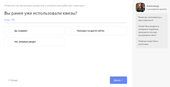 Вообще, квизы лучше делать персонализированными. Первой парочкой вопросов вы легко можете сегментировать аудиторию, например, на B2B или B2C, на новичков и профессионалов и т. д. С разными аудиториями, соответственно, по-разному необходимо вести диалог. Новичкам – объясняем и показываем, а профессионалам даем выбирать технические параметры и т. д.