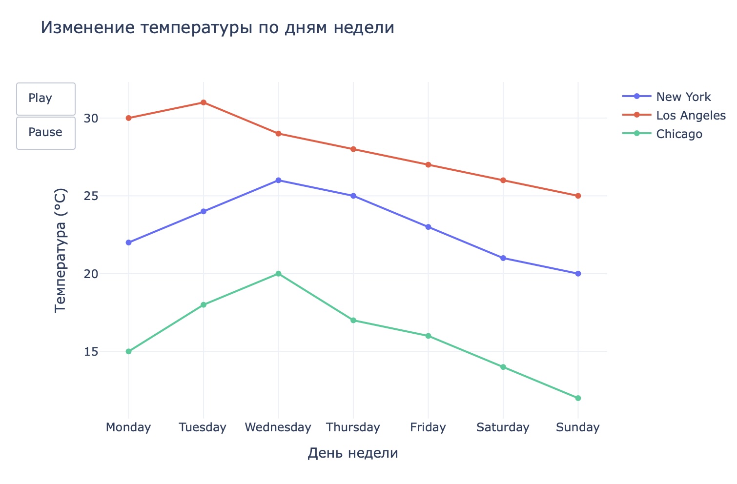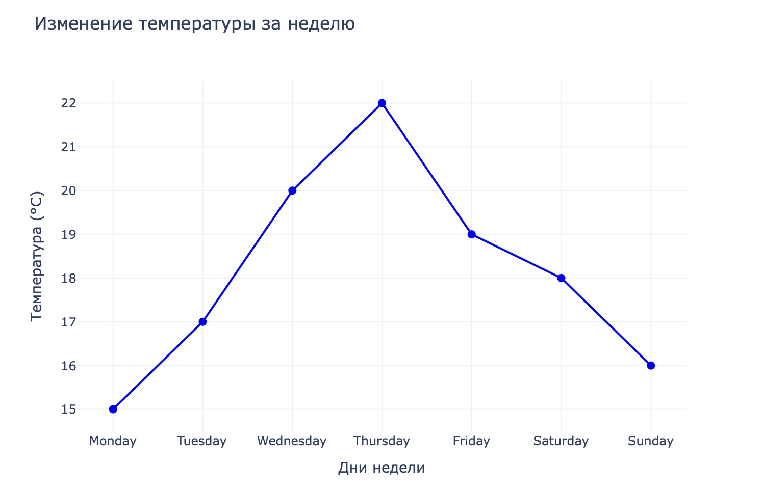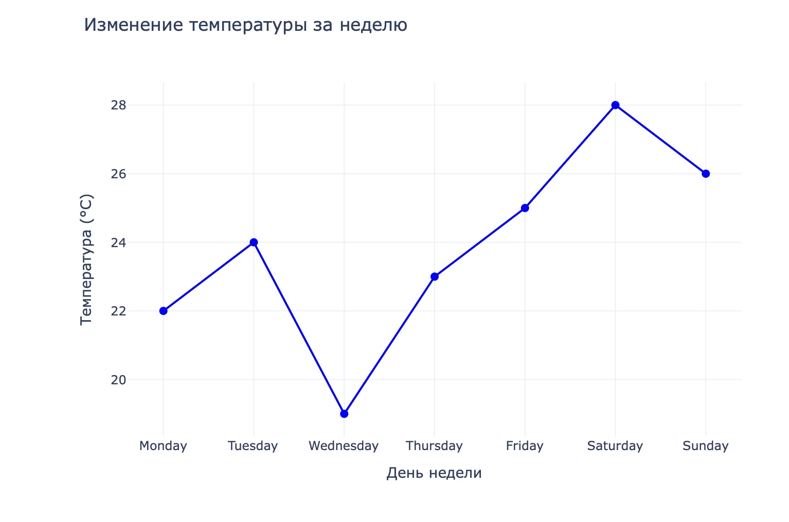 Рассмотрим пример, где мы визуализируем изменение температуры в течение недели.