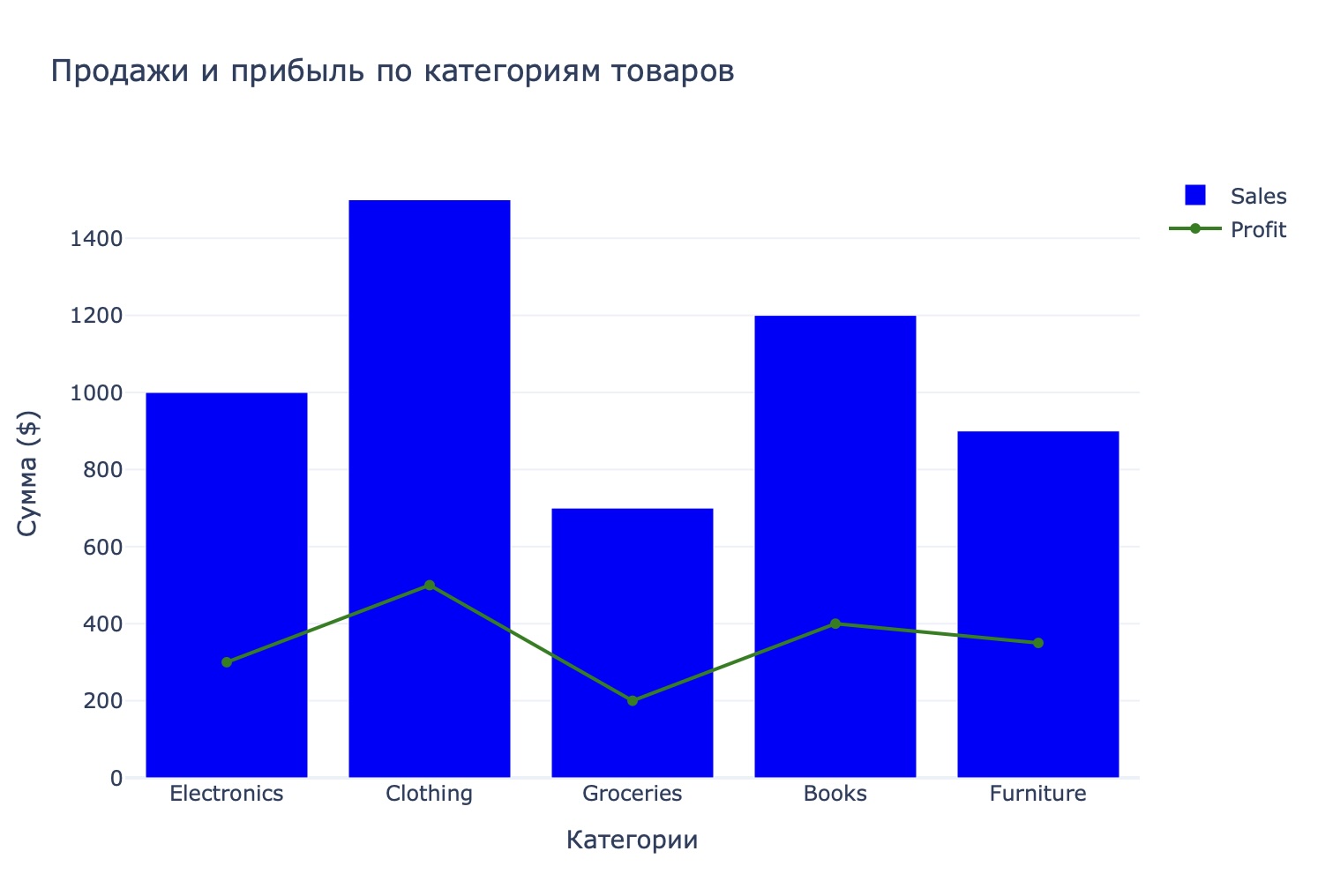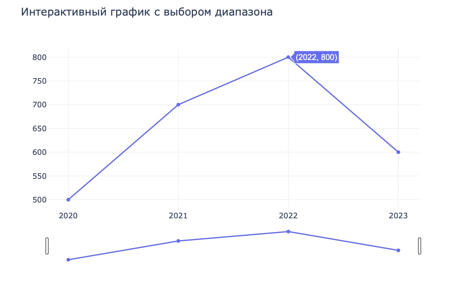 2.1 Использование Plotly для интерактивных графиковPlotly – это мощная библиотека для создания интерактивных графиков и визуализации данных. Она поддерживает широкий спектр графиков: линейные, столбчатые, тепловые карты, трехмерные визуализации и многие другие. Основное преимущество Plotly – интерактивность: пользователи могут увеличивать масштаб, перемещаться по графикам, а также взаимодействовать с данными в реальном времени.