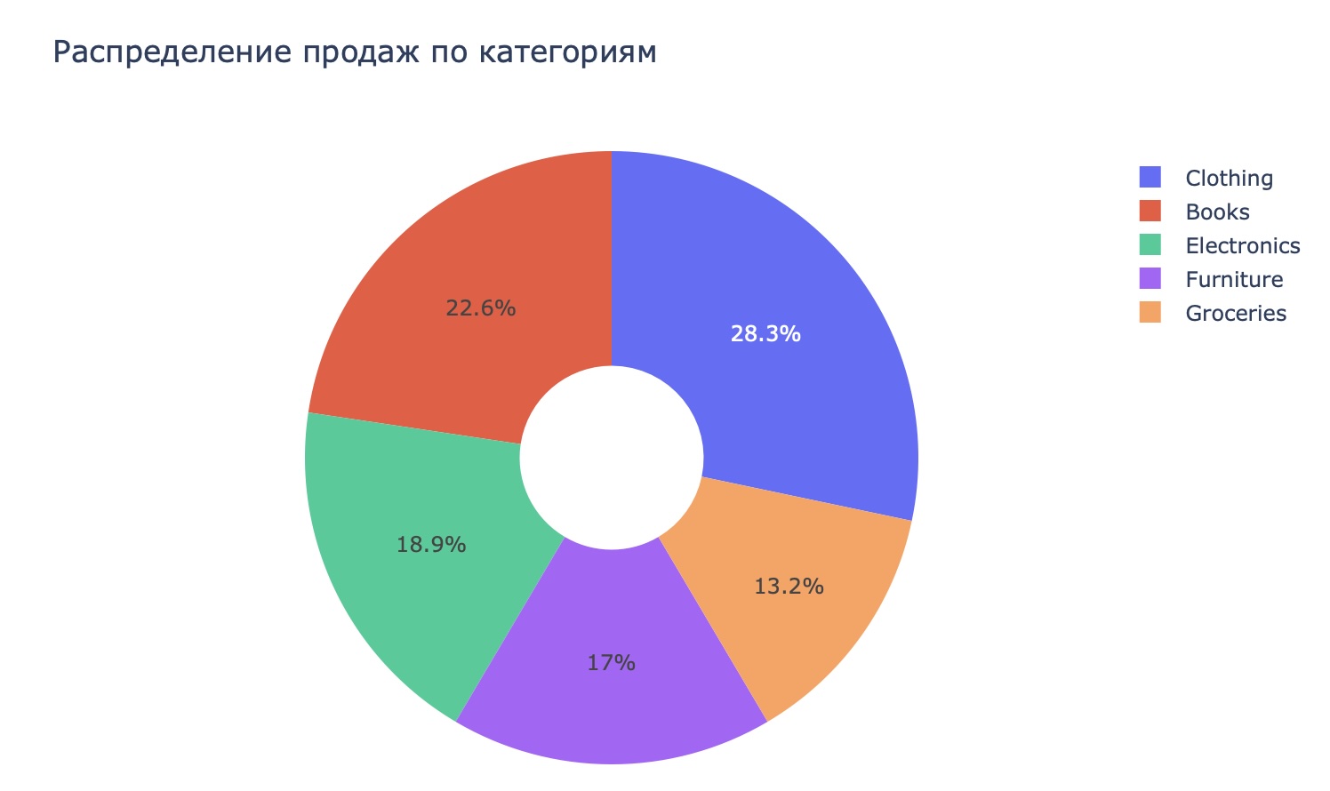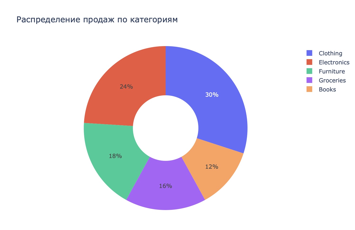 Описание: Определите, какой процент от общего дохода приносит каждый продукт.