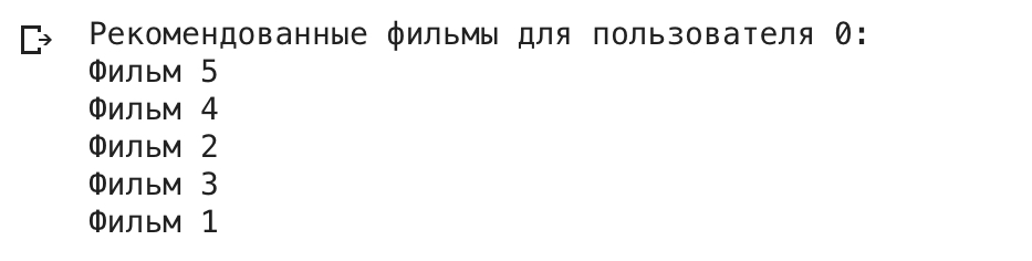 В приведенном примере выводится список рекомендованных фильмов для пользователя с идентификатором 0. Количество рекомендаций задается параметром `num_recommendations`.