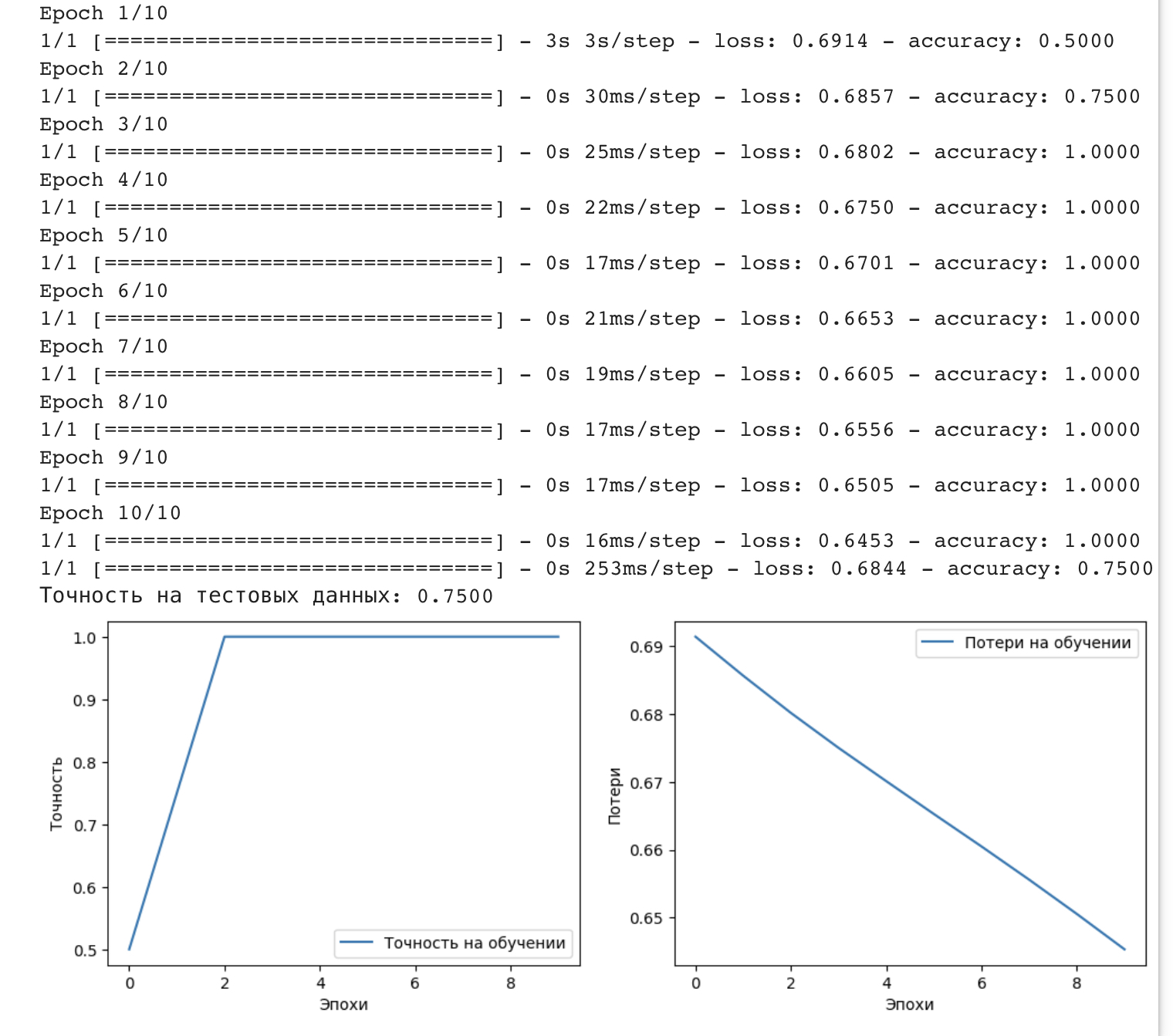 print(f"Точность на тестовых данных: {test_accuracy:.4f}")