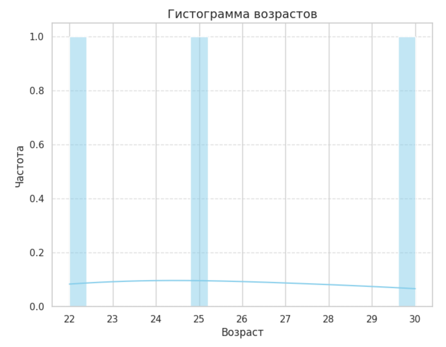 Мы создаем простой DataFrame с тремя колонками: 'Имя', 'Возраст' и 'Город'. Эти данные представляют собой три записи с именами, возрастами и городами.