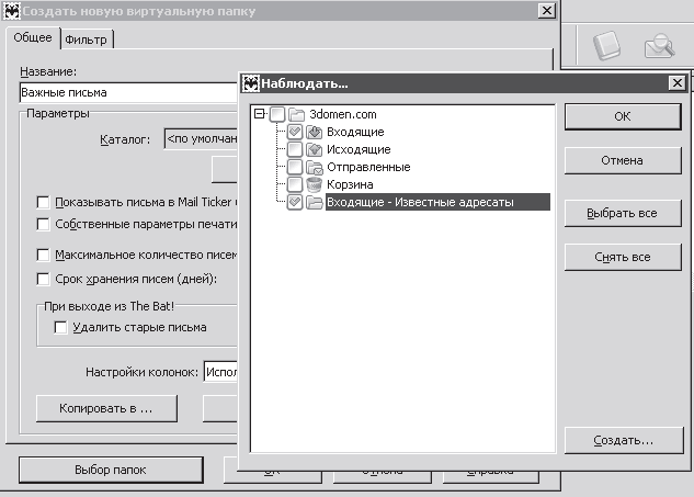 Рис. 1.2. Создание виртуальной папки в программе The Bat!