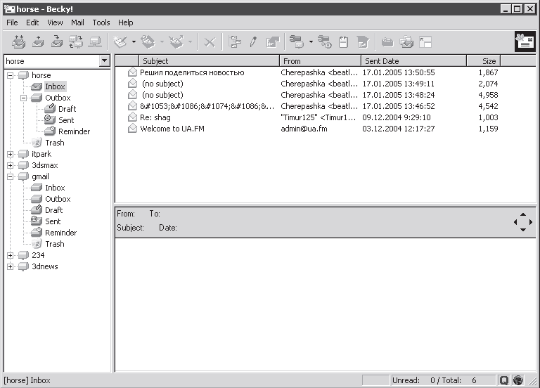 Рис. 1.6. Окно программы Becky! Internet Mail