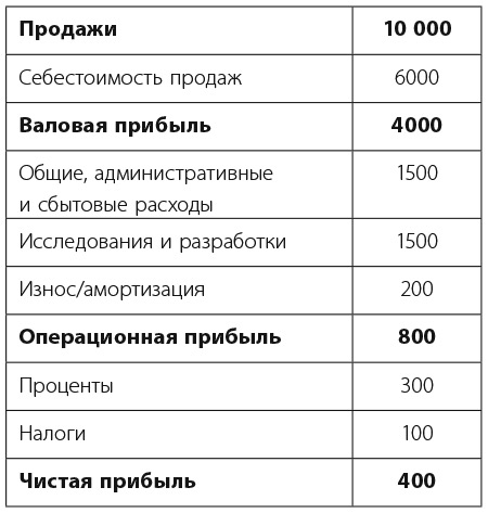Проценты – это еще один расход бизнеса, но они не относятся к операционным, поскольку не являются неизбежными. Компания может полностью избежать уплаты процентов без изменения своей операционной модели, прибегнув к другой форме соглашения со своими инвесторами. В соглашении о приобретении акций компания не обязуется вернуть капитал инвестора к определенной дате. Она также не обязуется выплачивать конкретные проценты. Взамен инвестор имеет неограниченные права на все, что остается после оплаты всех прочих расходов, всего их перечня, который мы уже рассмотрели: себестоимости продаж, общих, административных и сбытовых расходов, затрат на исследования и разработки, амортизации, процентов и налогов. Этот остаток называется чистой прибылью[24]. А чистая прибыль – это в итоге то, к чему мы стремимся, когда покупаем дешево и продаем дорого[25].