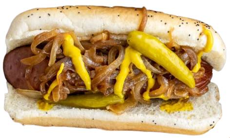 Традиционно хот-дог состоит из булочки, которая содержит сосиску, зеленую заправку, горчицу, кубики свежего лука, ломтики помидоров, маринованный огурец, острый маринованный перчик и сельдерейную соль.