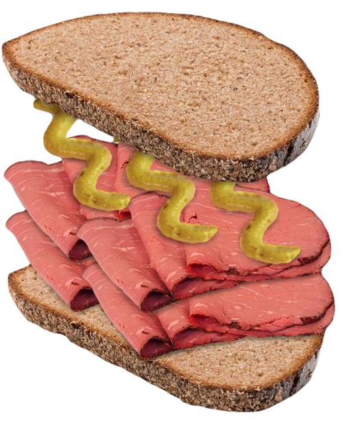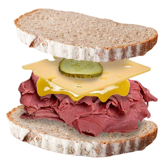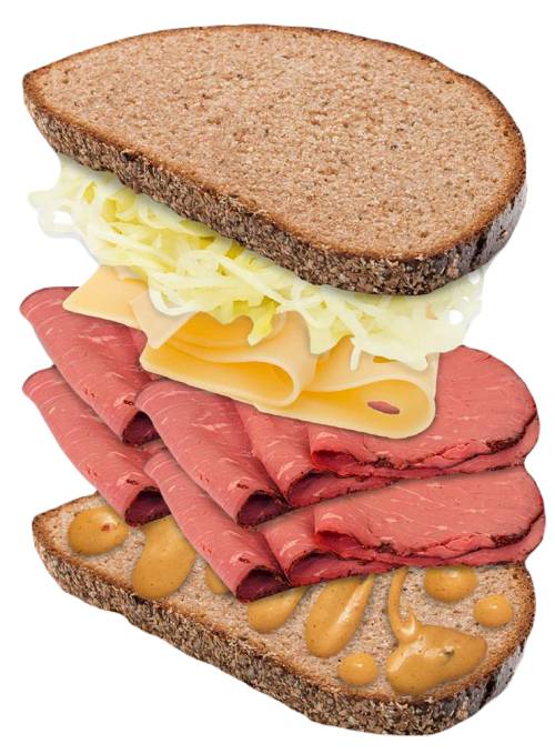 Как правило, сэндвич состоит из нарезанной солонины между двумя ломтиками хлеба (обычно ржаного или на закваске), но существует также множество вариантов сэндвича с добавлением капусты, горчицы, сыра или соленых огурцов.