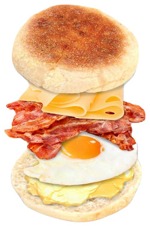 Этот сэндвич является распространенным американским завтраком. Он состоит из ломтиков хлеба или булочки, смазанной сливочным маслом и наполненной хрустящим беконом, жареным яйцом или омлетом, и сыром. Сегодня существует множество вариантов этого сэндвича, в зависимости от типов используемых в нем ингредиентов. Наиболее распространенные варианты выбора сыра включают чеддер, швейцарский сыр или американский сыр, а бекон можно заменить ветчиной и различными колбасами. Сэндвич часто подают с чашечкой кофе в качестве аккомпанемента.