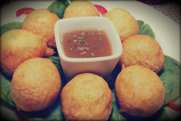 Это мучная закуска популярна на острове Тринидад, Гайане и Суринаме, где ее можно приобрести практически у любого уличного торговца едой. Она представляет собой жаренные кусочки пряного теста, которые традиционно подаются с различными соусами, йогуртами и чатни. Главными ингредиентами теста являются нутовая мука, вода и специи.