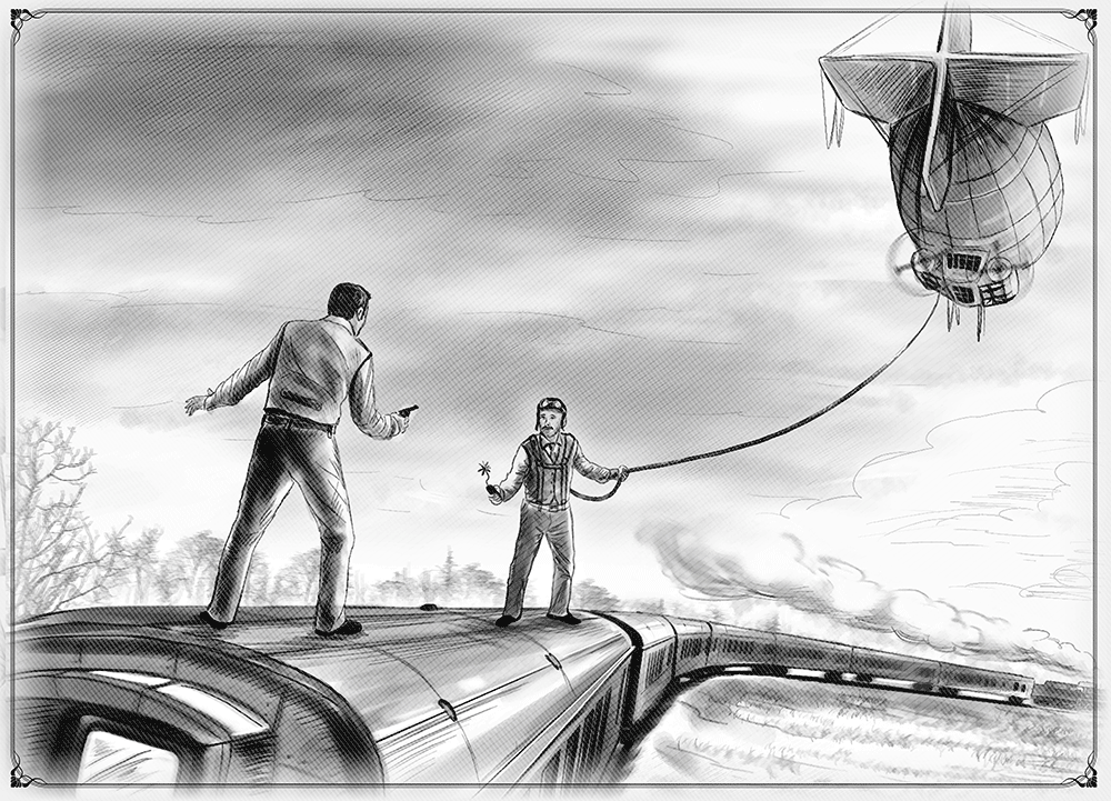 Аскольд тоже выстрелил и быстро перебежал в следующее купе. Он решил выбраться на крышу – в конце вагона была открытая площадка, с нее можно подняться наверх и открыть огонь по наемникам и дирижаблю.