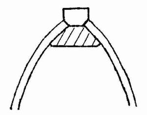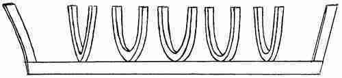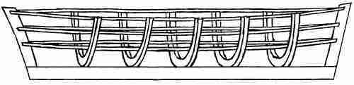 Поскольку н а б о р к о р п у с а напоминает скелет, ему нужны ребра. В корабле они есть и называются ШПАНГОУТЫ. «Гоут» означает дерево а «шпант» – ребро (в русском произношении буква "т" выпала"). Мы должны смастерить из дерева большущие дуги и на равных расстояниях друг от друга установить их на киле, между штевнями.