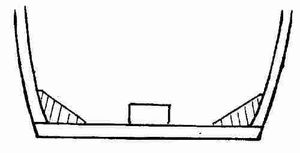 Сверху на топы шпангоутов концами кладутся чуть выгнутые палубные балки – б и м с ы (это, разумеется тоже поперечные связи). Кое-где в палубе вырезаются люки, в тех местах части бимсов убираются и остаются п о л у б и м с ы. Они соединяются к а р л и н г с а м и, которые образуют боковые стороны в рамах люков. Карлингсы идут вдоль корпуса, значит, относятся к продольным связям.