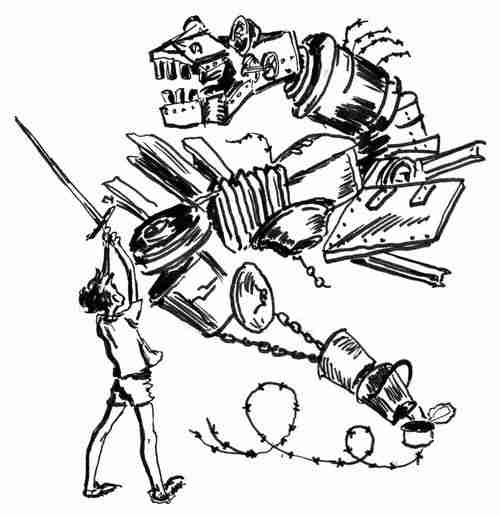 Желтые кузнечики. Искусственные насекомые с развитым интеллектом, которых четвероклассник Лесь выводил из теннисных шариков в инкубаторе собственной конструкции. (Дырчатая Луна).