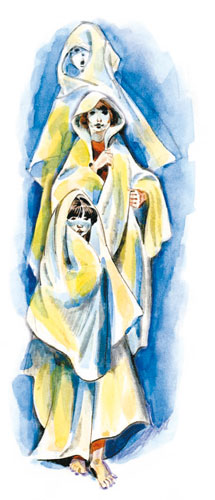 После «разбойничьей волны» прокатилась «волна ужасов». Всем захотелось наряжаться привидениями и кого-нибудь пугать. Мальчишки после отбоя малевали на голых животах страшные рожи, приматывали к голове деревянные рога и бесшумными скачками подкрадывались к девчоночьим дачам. Но девчонки не спали. Вымазав мелом лица и завернувшись в простыни, они со зловещим подвыванием бродили вокруг дач. В общем, привидений развелось видимо-невидимо, а пугать было некого.