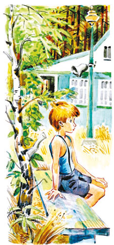 Все дружно вздохнули и повернулись к окну. За окном была усыпанная песком площадка, а на площадке – столб с репродуктором. В столбе, не очень высоко от земли, торчала стрела с огненным петушиным пером. Появился лохматый исцарапанный мальчишка в зелёных трусиках. Подошёл к столбу. Поправил на плече маленький, сильно изогнутый лук. Поднял голову, подумал и лениво подпрыгнул, чтобы достать стрелу. Не достал. Почесал о плечо подбородок, снова поправил свой лук и неторопливо удалился.