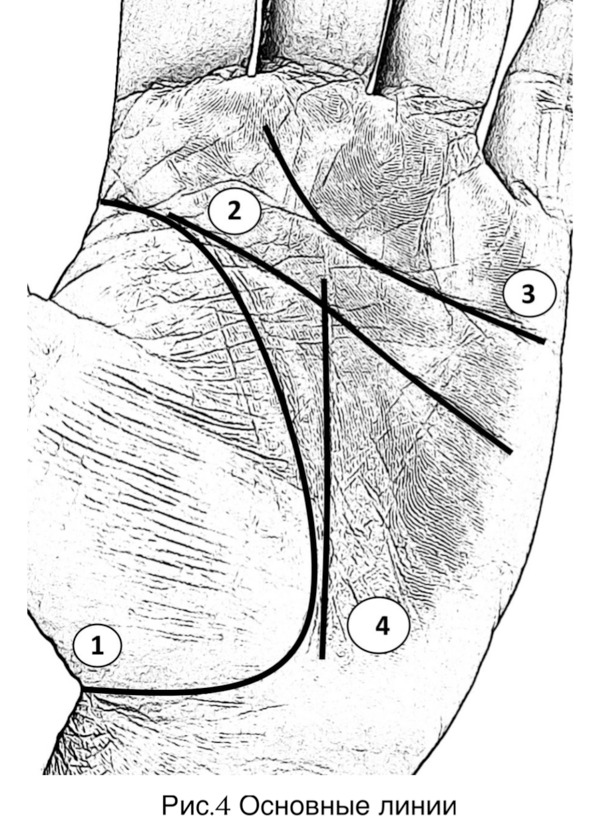 Линия 1 (жизни) обрамляет большой палец (Венеры). Присутствует у подавляющего большинства людей, отсутствие её – крайне редкое явление. Отражает основные события в течение жизни, здоровье. В своей практике ещё не встречал случая, когда её бы не было (рисунок 4 страница 16).