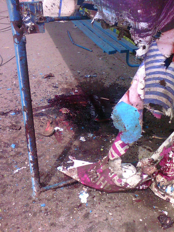 Раздался визг над головой и грохот где-то совсем недалеко! Там, откуда мы шли, где были еще 7 минут назад! Как потом оказалось, в семистах метрах от нас, именно там, где мы могли быть, задержись хоть чуть-чуть в супермаркете, упало два снаряда. Одним разорвало в клочья мужчину, стоявшего на остановке (то, что от него осталось, почему-то пролежало там до девяти утра…). На следующий день я сфотографировала эту остановку и лужу крови… Для истории…