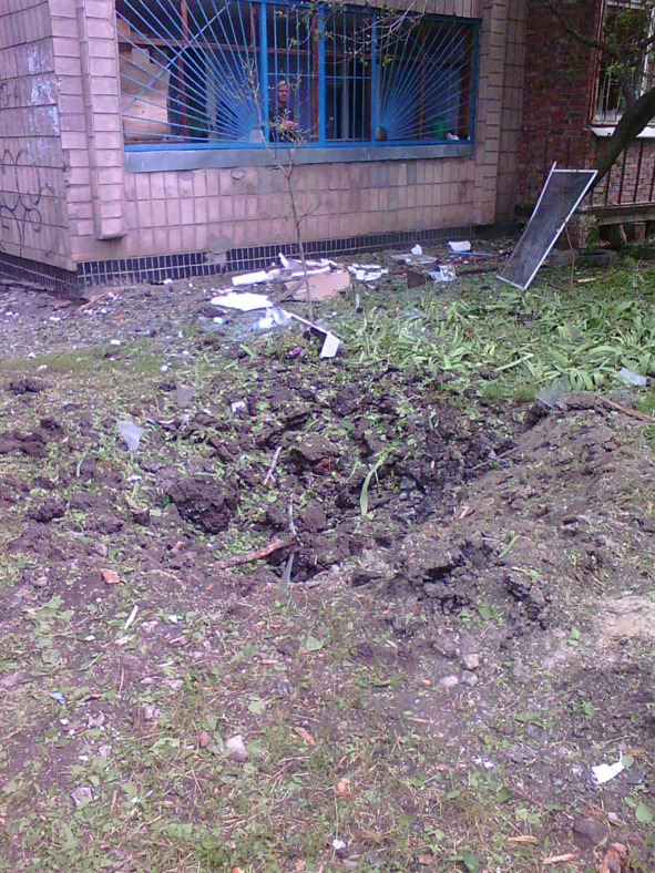 А потом мы смотрели на запись обстрела и поверить не могли, что ТАКОЕ могло произойти в центре Европы! Хотя почему же? После Одессы можно было понять, что возможно самое жестокое и невероятное! И никто за это не будет отвечать! И версия, конечно же, была самая фантастическая: ополченцы стреляли по самолету, но промахнулись (это одна). Или что снаряд… среагировал на температуру кондиционера (которого на самом деле там не было!). На следующий день после обстрела я пошла туда, чтобы увидеть все самой. И мне стали смешны обе версии! Достаточно было увидеть многочисленные воронки, изрешеченные осколками деревья и само пострадавшее здание! Моя знакомая, наслушавшись проукраинских СМИ, с пеной у рта доказывала, что прямо там, в парке Шевченко стояла установка ПЗРК, из которой якобы стреляли по самолету. Но там даже неба не видно из-за деревьев! Рядом детская площадка, на которой с малышами гуляют. Какая ПЗРК?!!!
