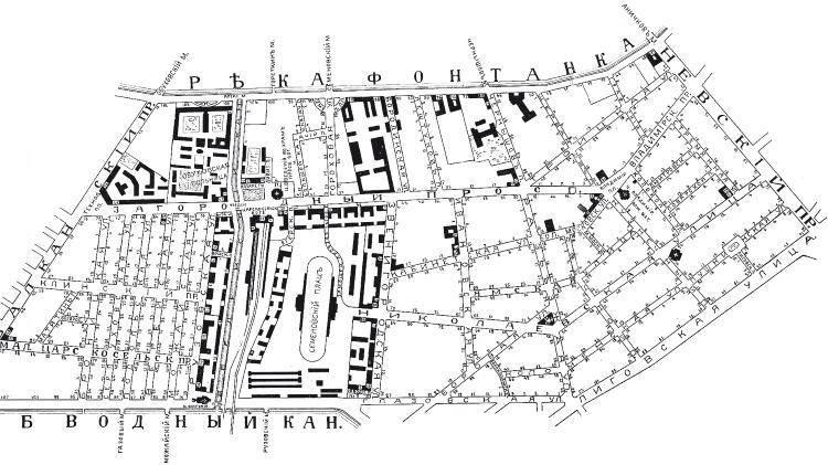 Со второй половины XVIII в. огороды и дачи здесь начали сменяться городскими постройками. После пожаров 1730-х гг. за Фонтанку было решено переселить часть горожан.