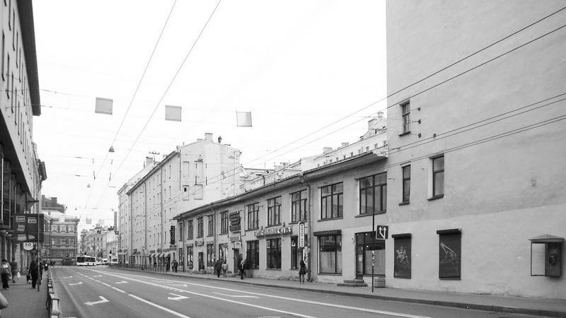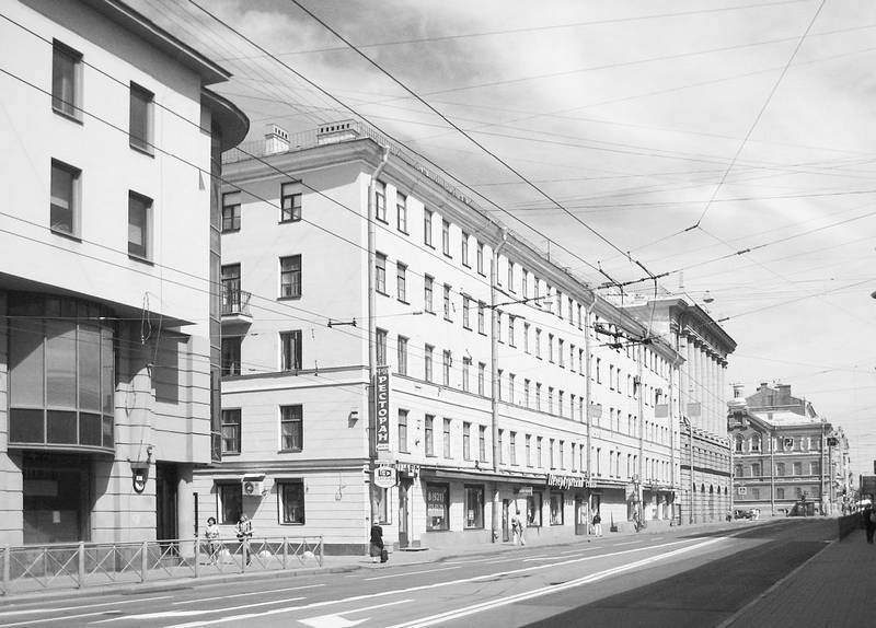 Бывшие хозяйственные постройки, оказавшиеся на красной линии проспекта при его пробивке в 1906 г., после Великой Отечественной войны реконструированы, надстроены и приспособлены для торговых учреждений и учреждений различного назначения.