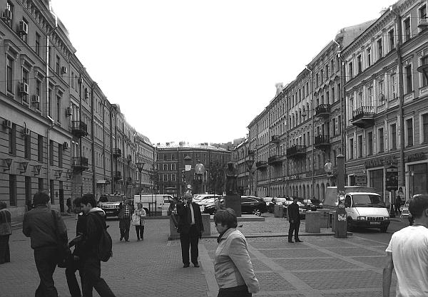 Начинающаяся от Владимирской площади памятником Федору Михайловичу Достоевскому Большая Московская улица воспринимается как естественная иллюстрация городской среды, в которой могли развернуться события, описанные в произведениях писателя. Такова ее спокойная архитектура и таковы общественное положение и облик большей части жителей, ее населяющих: обыватели, мелкие чиновники, по большей части пребывающие в отставке.
