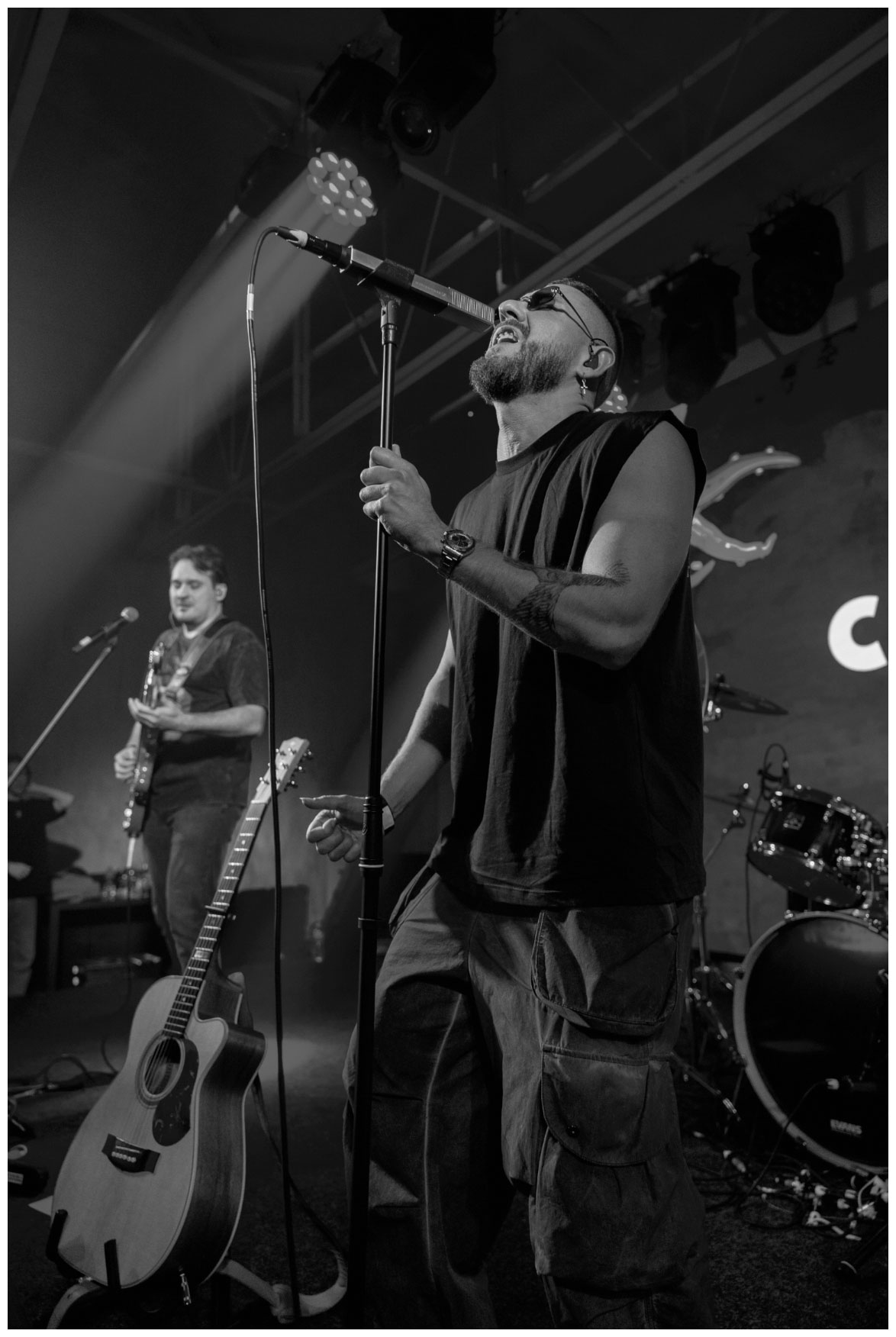 Молодой человек в кепке, немного стесняясь, просит передать микрофон: