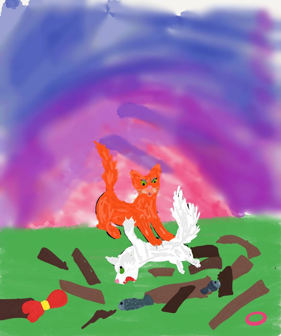 Это была настоящая борьба! Кошки кувыркались по всему дому, царапая друг друга, и так увлеклись, что даже не подумали, как это отразится на состоянии хлипкого теремка. Из-за их драки домик покосился, закачался и… сломался.