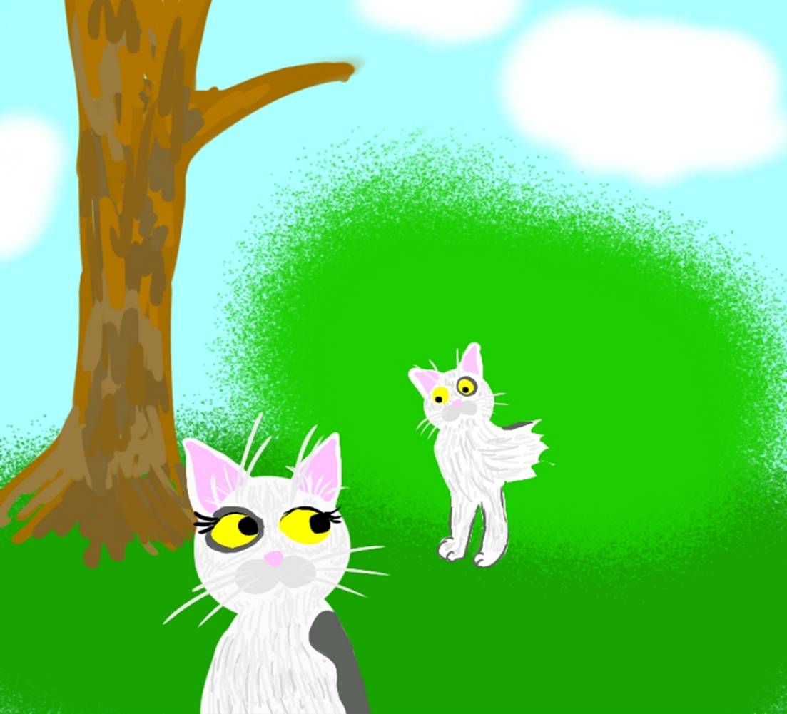 – Привет! – сказала пятнистая кошка. – Меня зовут Крапинка, а это – Мурзик, мой брат.