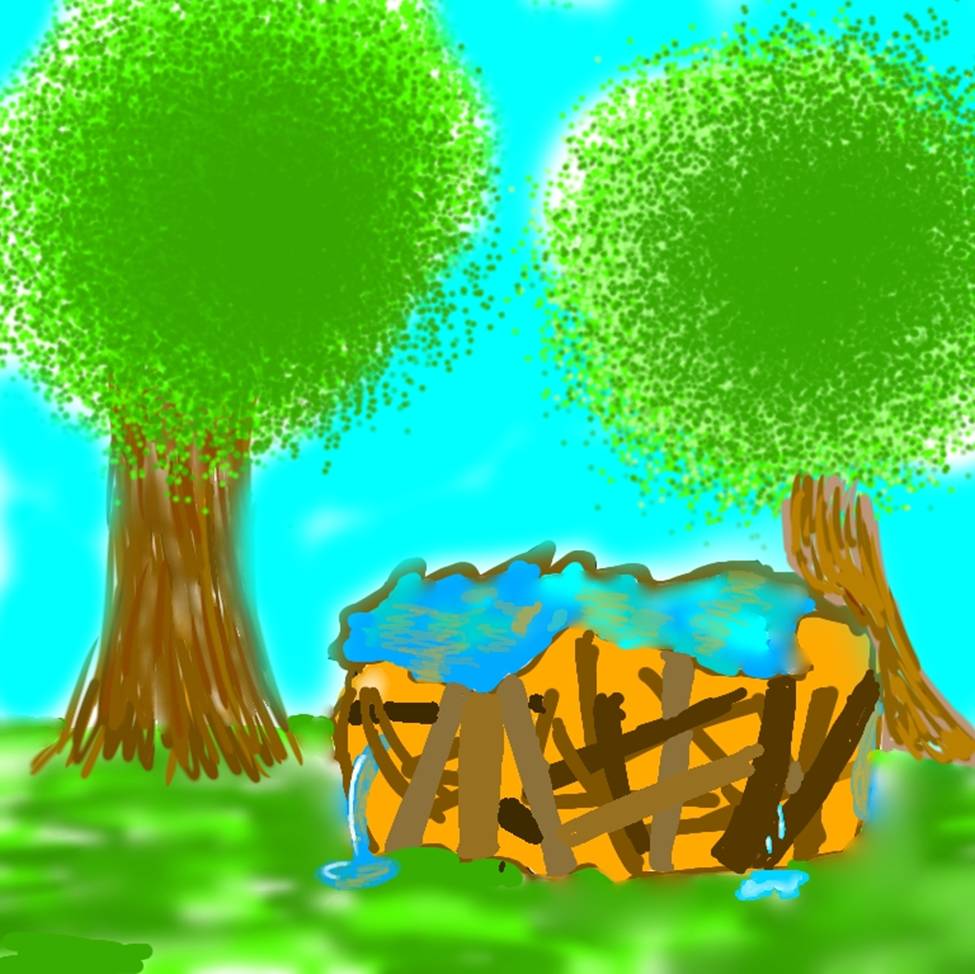 Но никто её не слушал. Работа шла медленно и очень трудно. Через 2 часа каркас из веток был готов. Теперь нужно было из чего-то сделать стенки бассейна. Волк сказал: