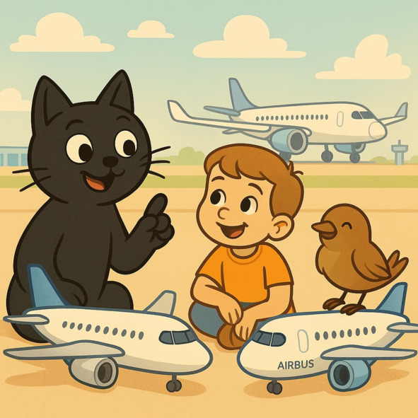 – Смотри внимательно, – Фьюмик указал хвостом на модели. – У Боинга нос острее, у Аэробуса – круглее, как будто поцеловался с утюгом.